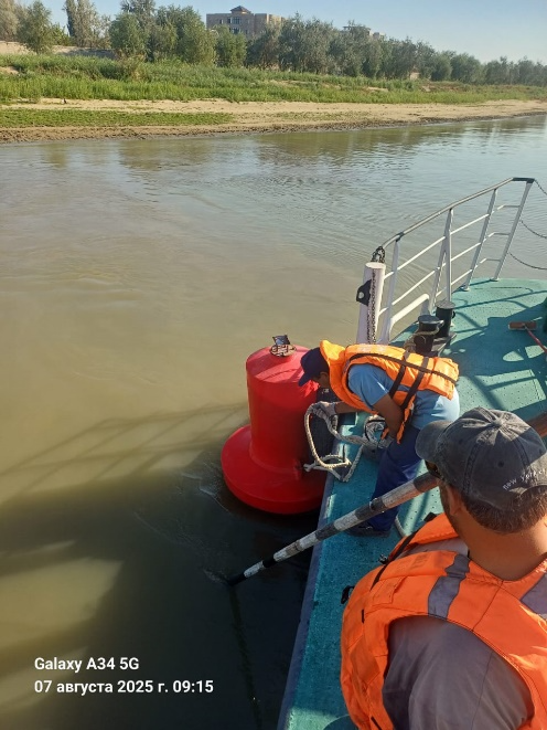 В целях улучшения судоходных условий, обеспечение безопасного плавания судов и составов, Урало-Каспийский филиал производил работы с 04.08.2025 г. - 10.08.2025 г. по выставлению (снятию) и обслуживанию навигационного оборудования. Определения глубины и ширины судовых ходов на обслуживаемых участках: р. Урал, от Кривостарицкого яра до Н. Барбастауского яра протяженность 43 км., Урало-Каспийского канала от г. Атырау, центрального автомобильного моста до входного буя протяженностью 56 км. и на р. Кигач (рукав р. Волга) на территории Республики Казазахстан протяженностью 41 км.